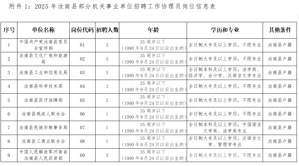 2025年汝南縣部分機關事業單位 招聘工作協理員公告